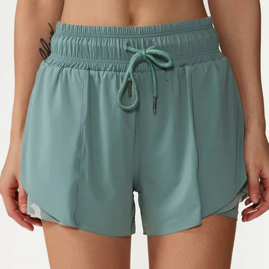 Fake Two Pieces Fitness Short Women Solid Color Nylon Breathable Quick-Drying Sport Running Shorts Female Yoga Gym Clothing